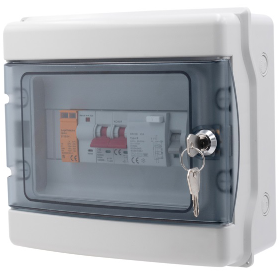 WBM Quadro di alimentazione monofase per WB con MCB, RCD SPD 230VAC 40A IP65